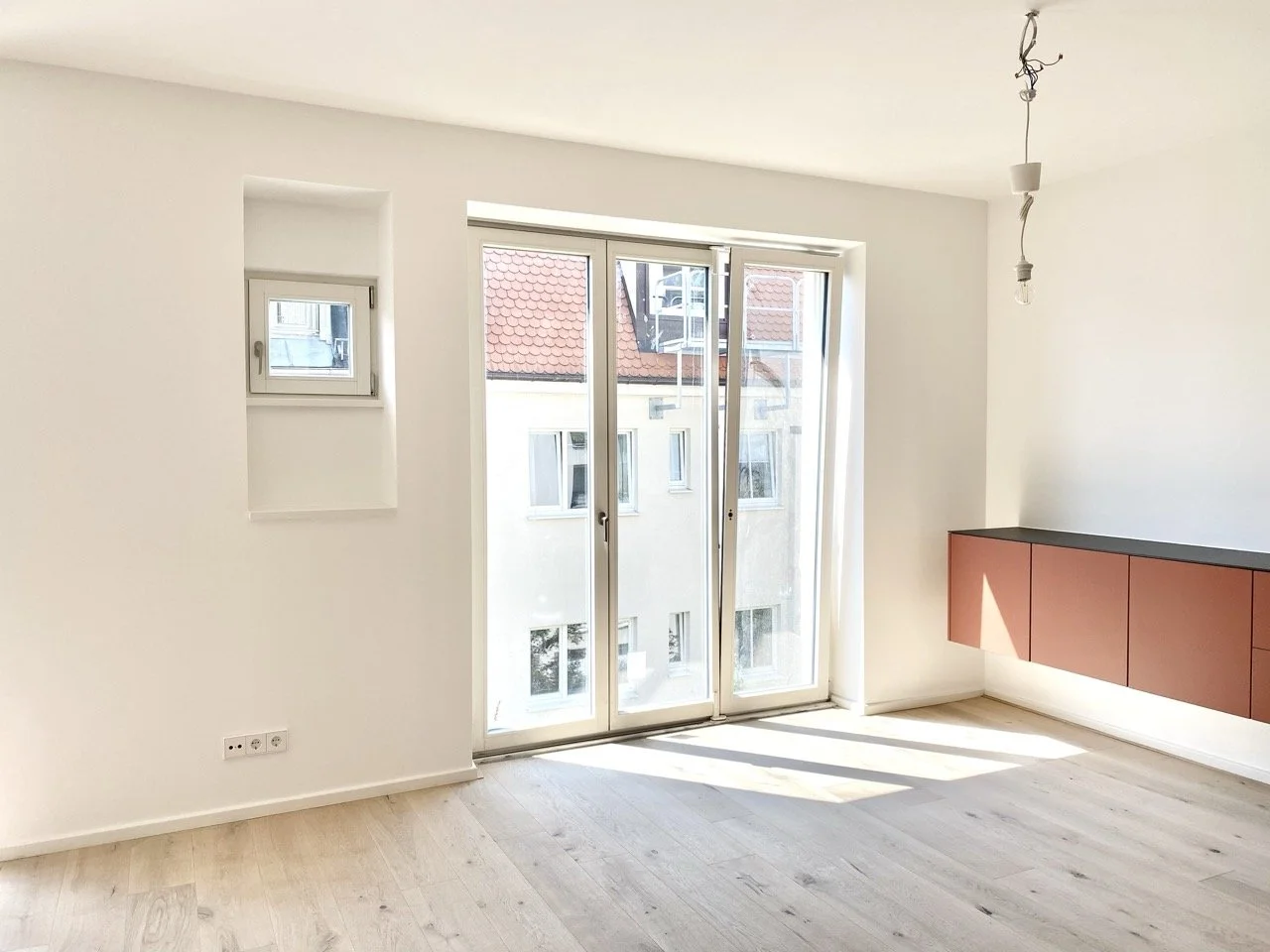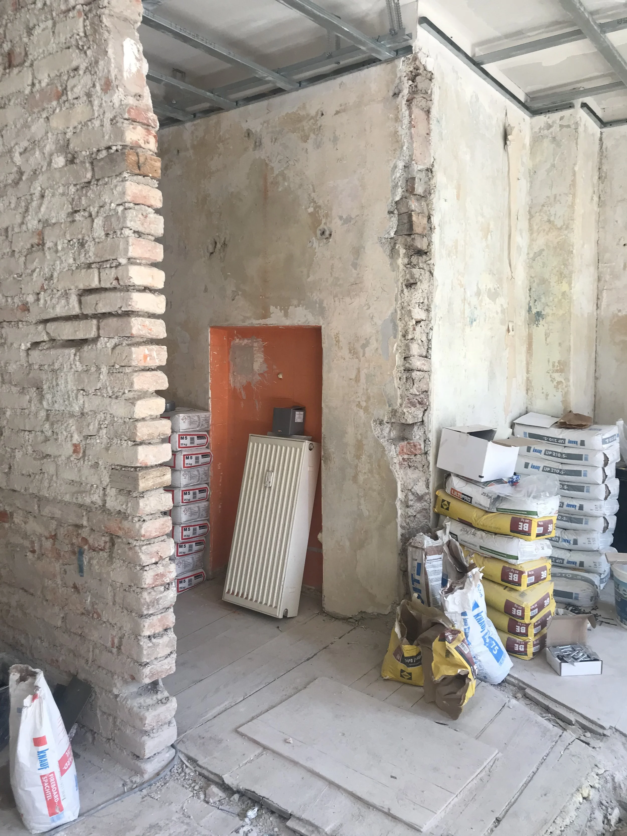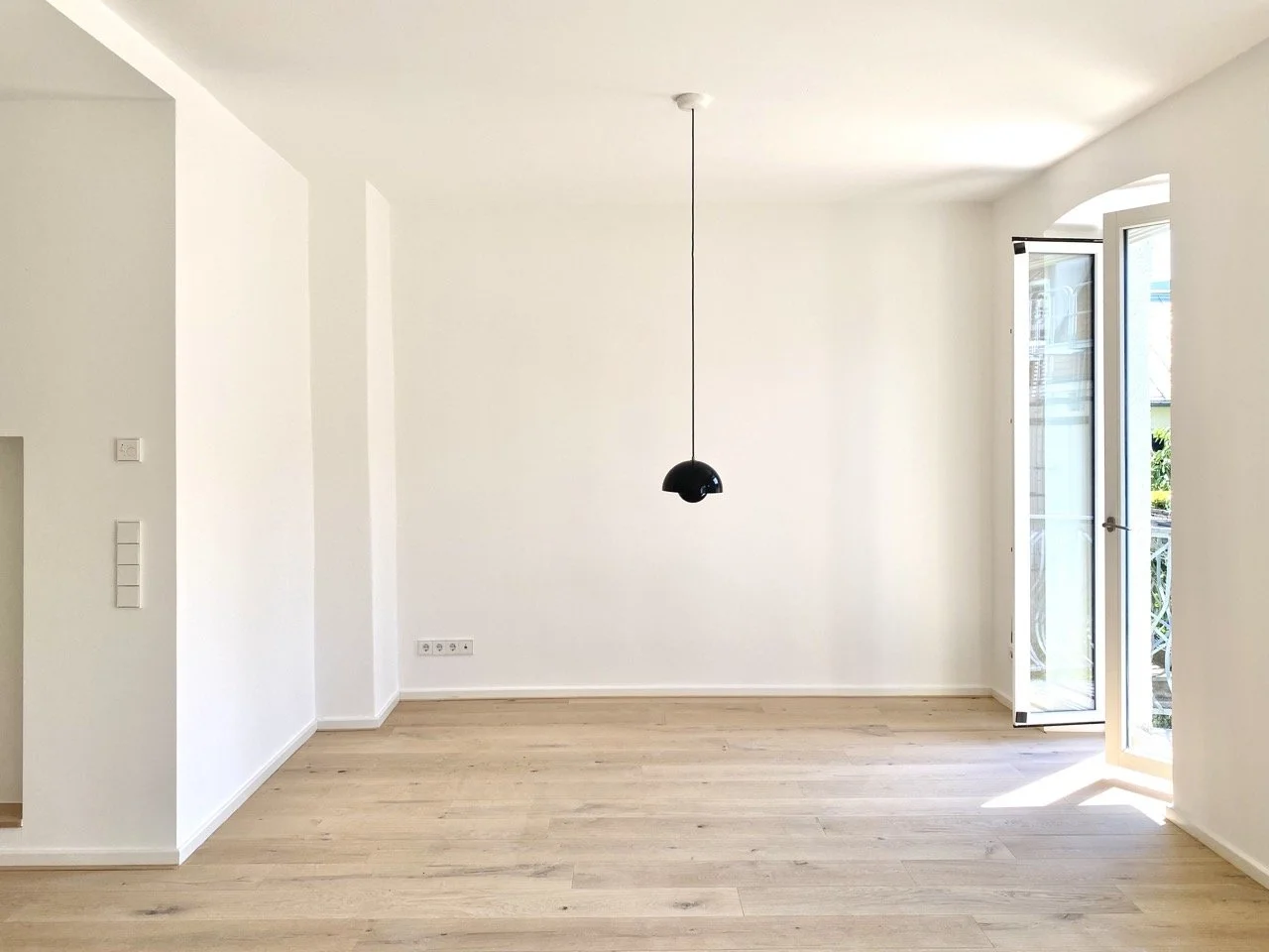 Nach fast 40 Jahren durchgehender Nutzung wurde eine Wohnung in einem Stadthaus im Münchner Westend umfassend saniert und neu gestaltet. Die Spuren eines Bombenschadens aus dem Zweiten Weltkrieg waren in der Bausubstanz noch spürbar. Nun mussten einige Wände dem offenen Grundrisskonzept weichen.