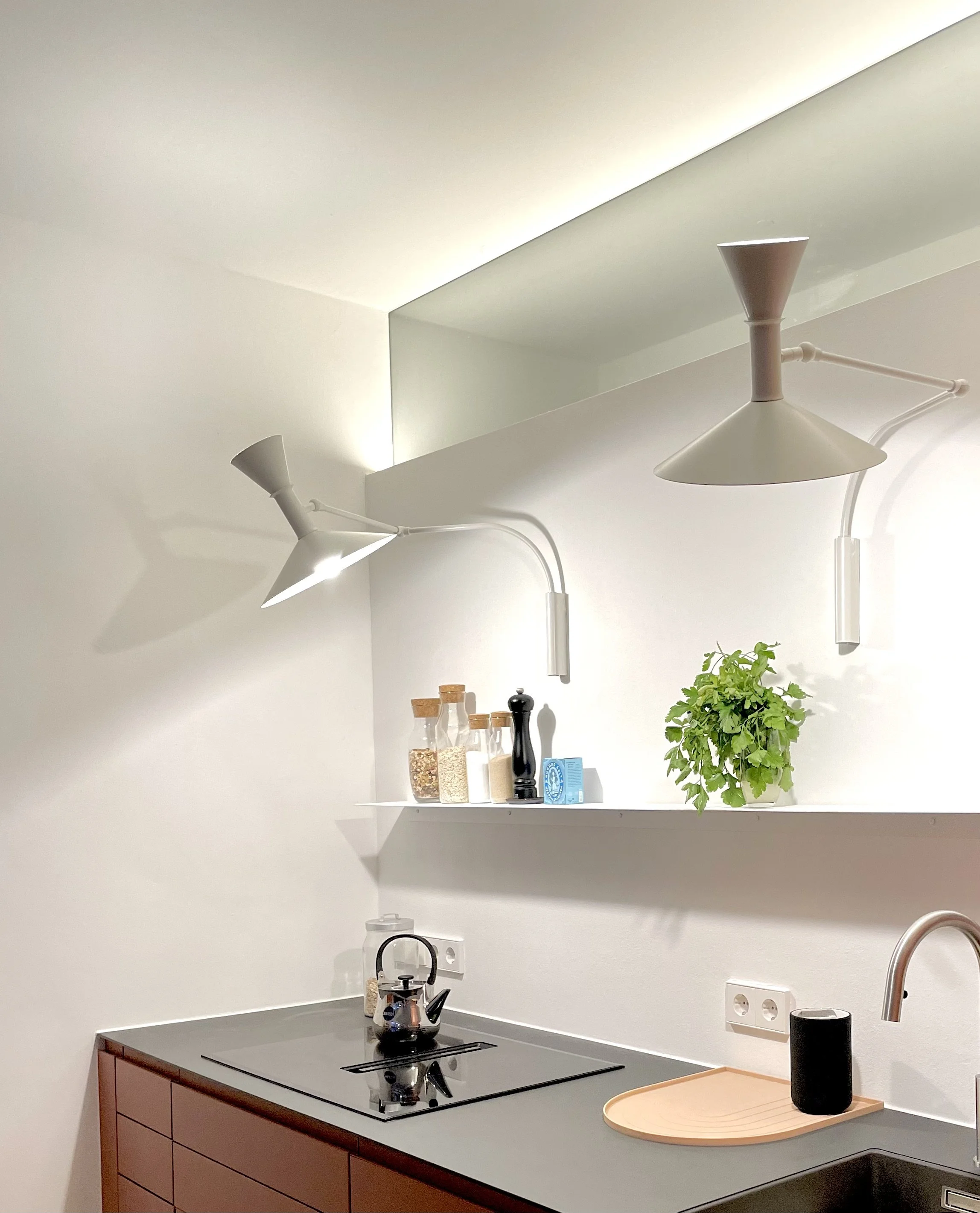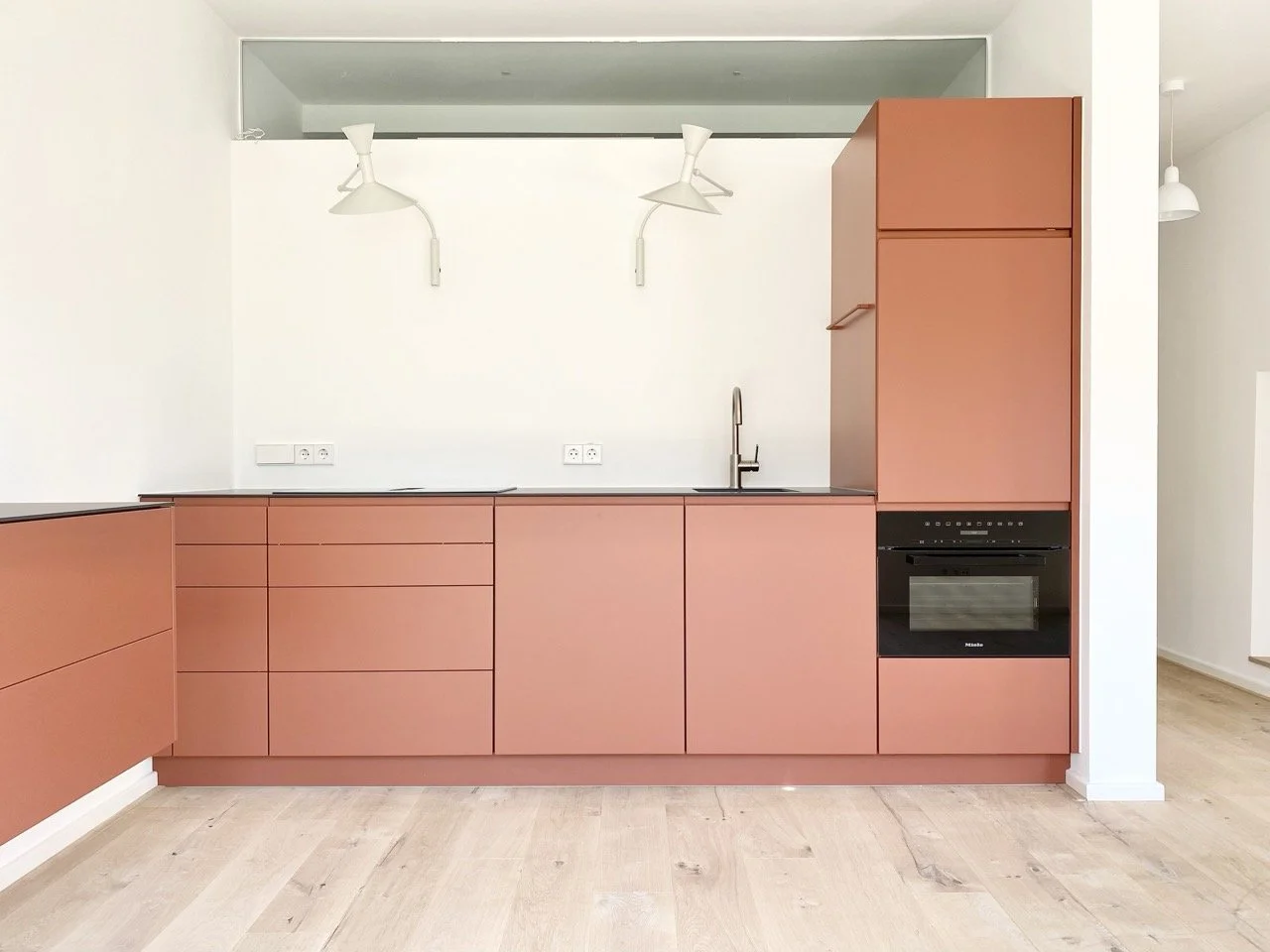 Historische Elemente wurden bewusst freigelegt und erhalten – die Waschbeckennische im Flur und der Rundbogendurchgang zwischen den Individualräumen erzählen die Geschichte des Hauses weiter. Der geseifte Eichenboden sorgt für ein warmes Barfußgefühl, während die Küche in Le Corbusiers „L’ocre Rouge“ mit ihrem tiefen Rotton einen ausdrucksstarken, aber zeitlosen Akzent setzt. So verbindet die Neugestaltung Vergangenheit und Gegenwart zu einem harmonischen Wohnkonzept.